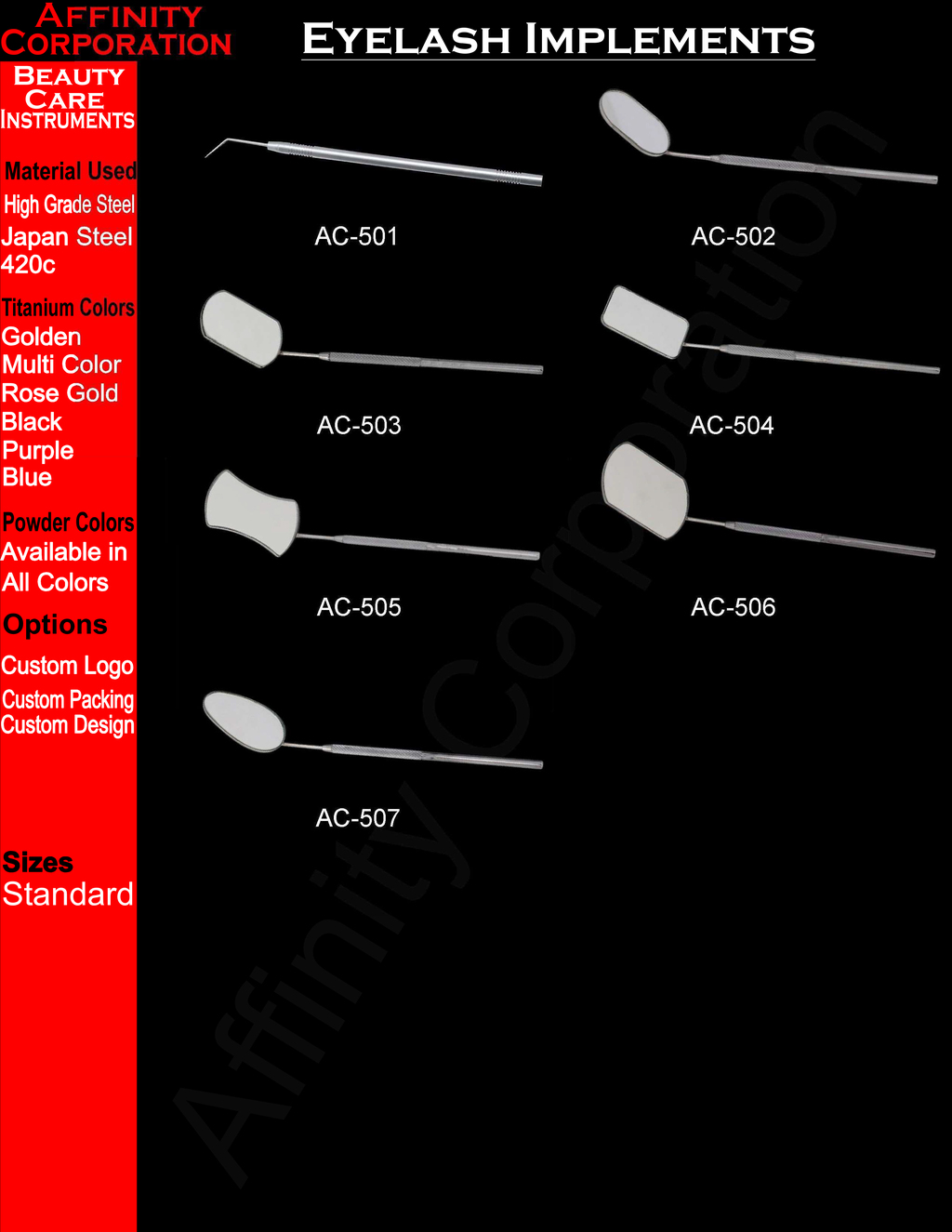 At Affinity Corporation, we are committed to serve the professionals by providing top quality products with related service worldwide. We endeavor to come up to our customers’ satisfaction through quality, innovation, efficiency, reliability, competitive prices, and courteous services.