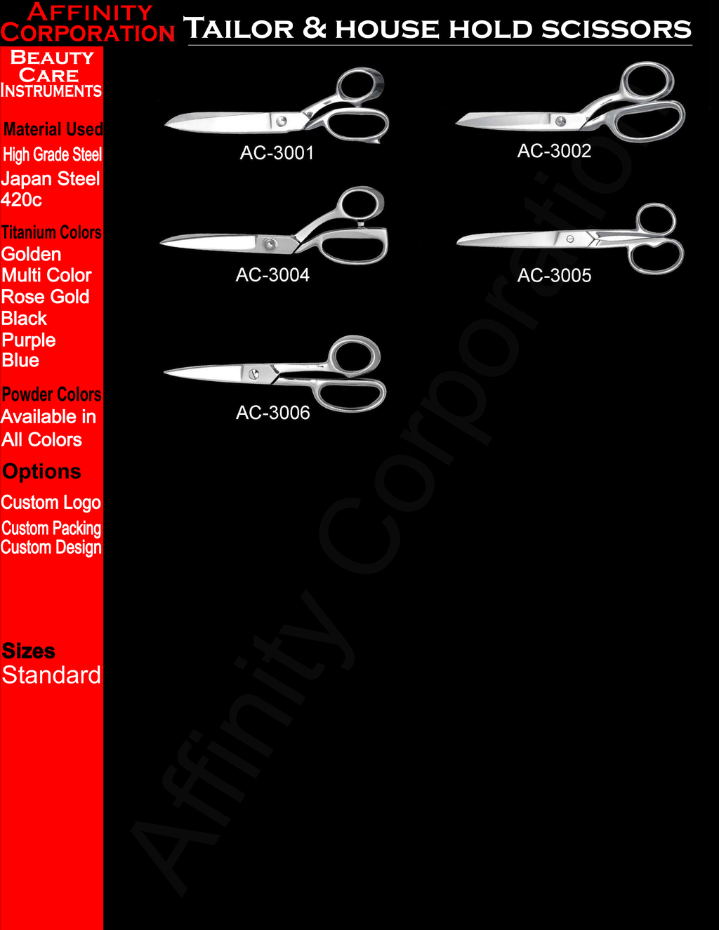 At Affinity Corporation, we are committed to serve the professionals by providing top quality products with related service worldwide. We endeavor to come up to our customers’ satisfaction through quality, innovation, efficiency, reliability, competitive prices, and courteous services.